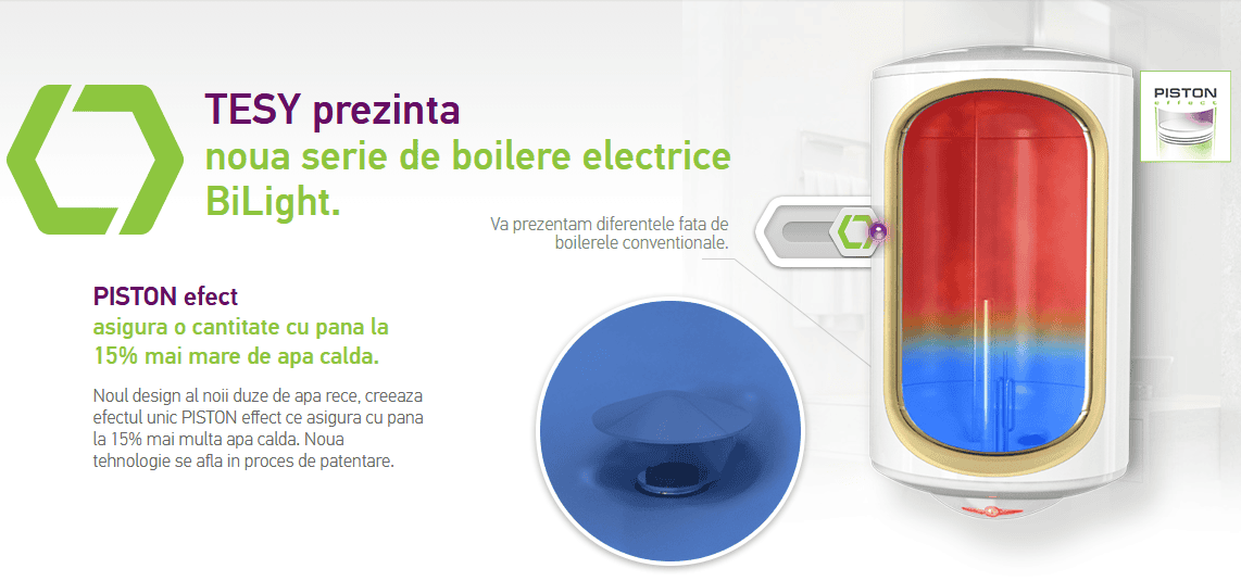 Boilerele TESY din gama BiLight sunt proiectate in concordanta cu cele mai inalte standarde europene de siguranta si cu cerintele de calitate. In aceste echipamente sunt implementate solutii inovative patentate si dezvoltate de catre echipele de dezvoltare din cadrul companiei TESY in domeniul eficientei energetice si performantei boilerelor electrice prin asigurarea unei cantitati mai mari de apa calda, functionarea fara probleme a echipamentului si o viata de exploatare lunga.