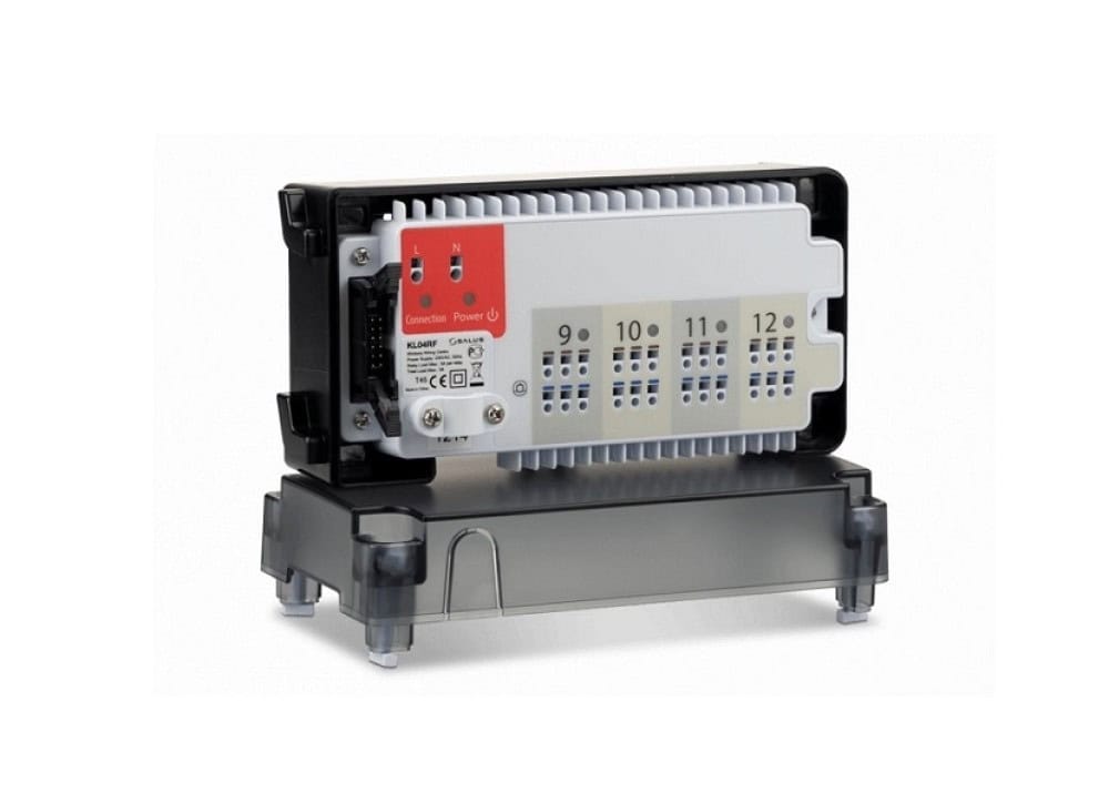 Extensia pentru centru de comanda Salus KL04RF este un echipament dedicat sistemelor de incalzire in pardoseala, ce se foloseste impreuna cu centrul de comanda cu 8 zone KL08RF, adaugand controlul a inca 4 zone. Prin intermediul acestuia se pot conecta termostatele pentru incalzire in pardoseala din seria wireless (ex: VS20BRF) la servomotoarele ce comanda circuitele sistemului, cu comanda prin unde radio. Este de asemenea un echipament ce poate fi integrat cu succes intr-un sistem controlabil prin internet IT600.