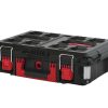 Sistemul modular PACKOUT Milwaukee este cel mai versatil sistem de depozitare si transport din industrie. Fiecare componenta se conecteaza sigur prin sistemul de blocare cu un singur click, permitand configuratii personalizate pentru orice meserie. Constructia din polimeri rezistenti la impact asigura protectia sculelor si materialelor in orice conditii.