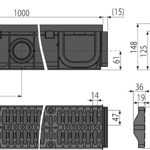 - Grătar din material compozit – fixat la canalul de scurgere cu opt șuruburi din oțel inoxidabil, lățimea fantei de admisie 14 mm