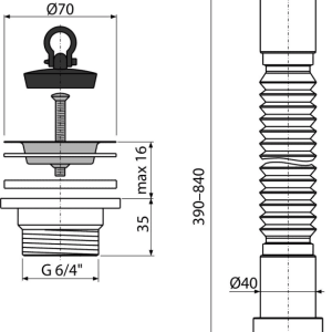 - Dimensiunea filetului pentru racordarea sifonului 6/4″