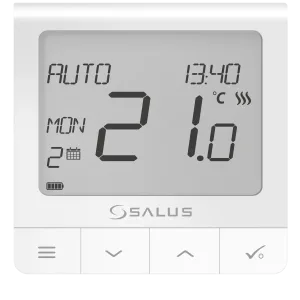 Termostatul Salus VS10BRF este un echipament dedicat pentru sistemele de incalzire in pardoseala sau radiatoare, acesta fiind conectat wireless la un centru de comanda KL08RF/KL10RF sau la un servomotor cu transmisie prin unde radio.
